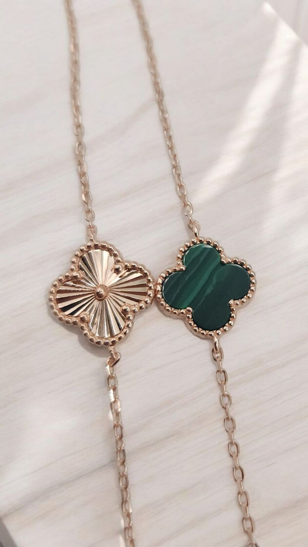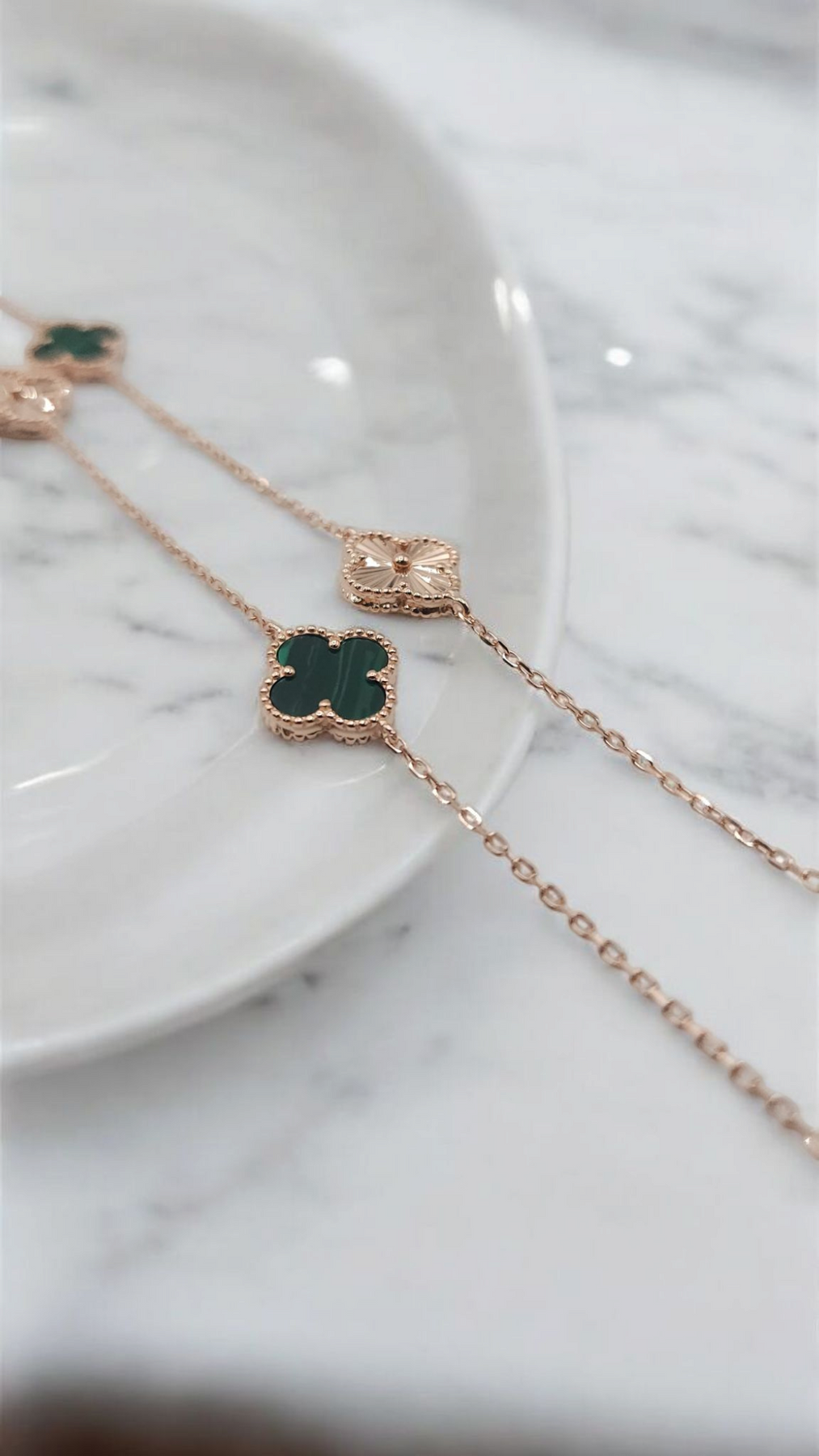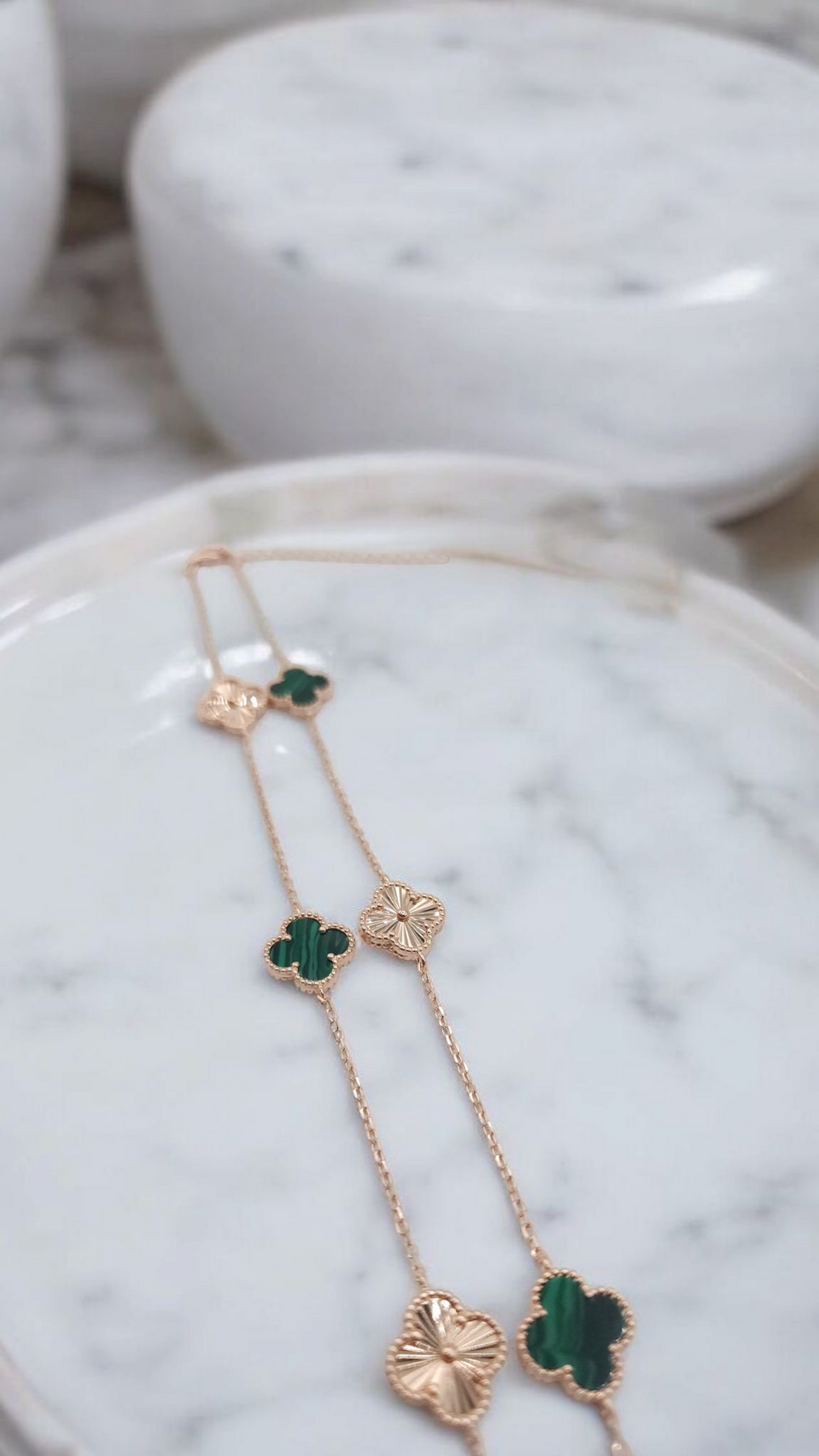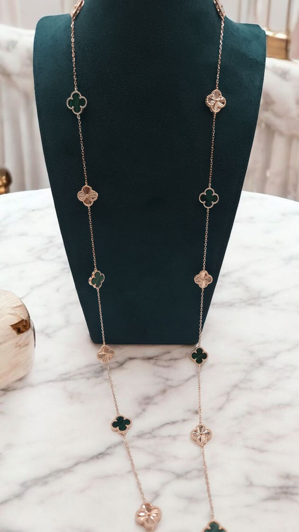 Sautoire en treffle à porter dans les deux sens. Avec des treffles en vert et en or jaune.